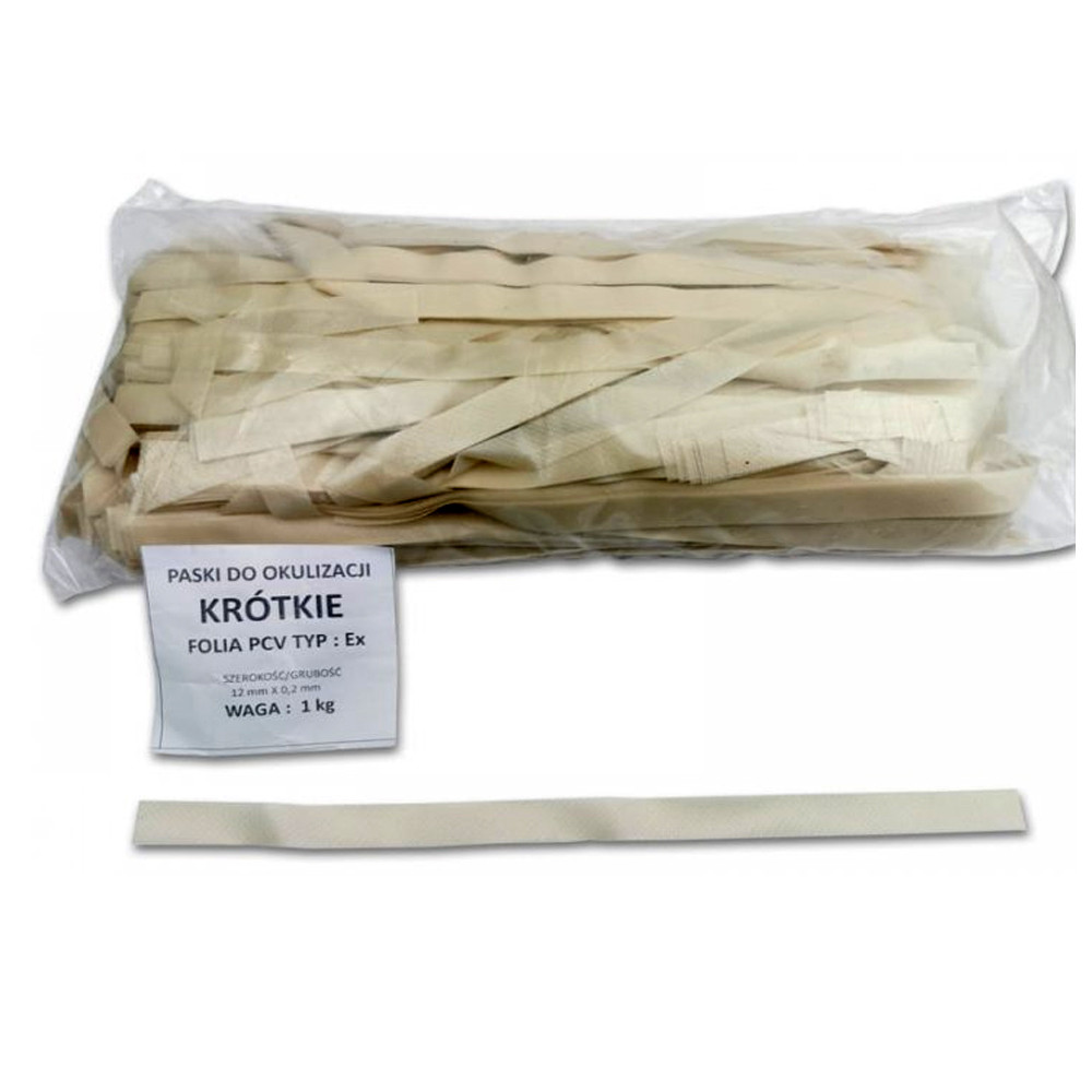 Щоб заощадити час і полегшити роботу при ранньому щепленні, пропонуємо вашій увазі плівку з ПВХ, порізану смужками по 1,2*25 см і фасовану по 1 кг (приблизно 1200 шт). Каландрована плівка забезпечує легку і надійну фіксацію з одночасним захистом місця щеплення при подальшому зростанні стебла. Закріплення місця щеплення відбувається при намотуванні стрічки на гілки, оминаючи обмотування бруньки. Плівка трохи тягнеться але не розкладається під дією сонячного світла.